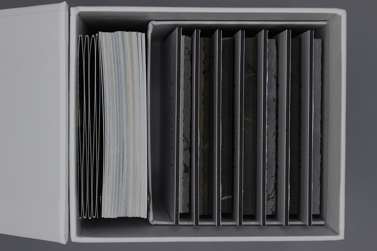Una scatola non molto grande che contenesse più materiali e che potesse essere spedita in tutto il mondo e conservata facilmente sul tavolo e ben riconoscibile se riposta a scaffale.