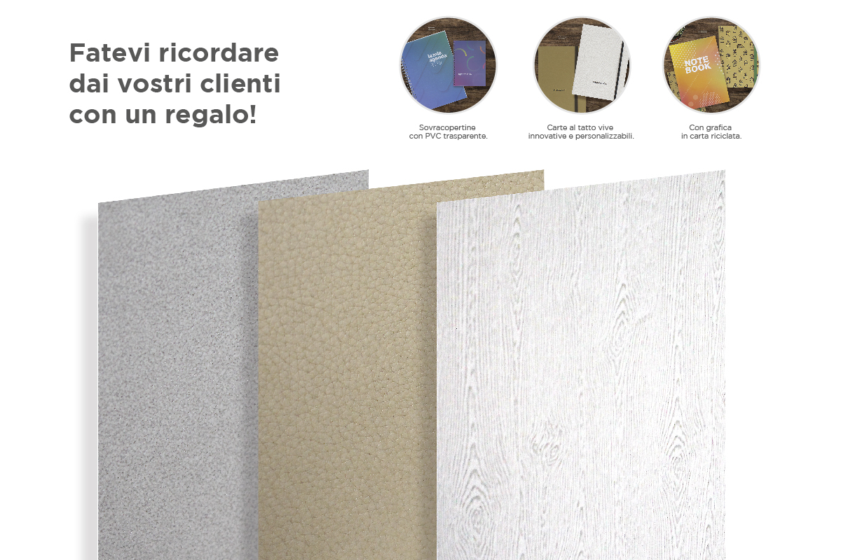 Ogni oggetto è predisposto per essere personalizzato con le vostre immagini o logo, scegliendo tra finiture, carte di pregio e nobilitazioni di stampa.