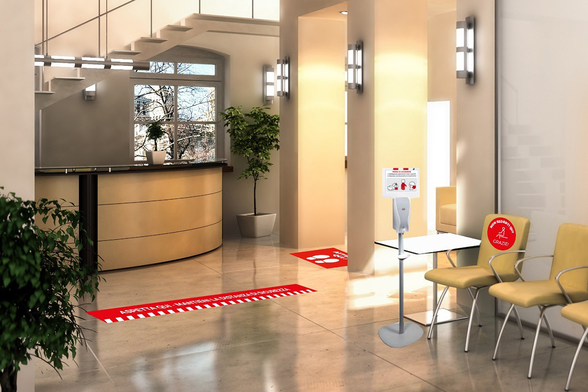 Il rispetto delle distanze di sicurezza e la gestione del flusso di persone sono importanti per limitare la diffusione del Coronavirus. Per questo motivo abbiamo creato la segnaletica Covid-19 adesiva per la comunicazione dell’emergenza su vetrine e pavimenti.