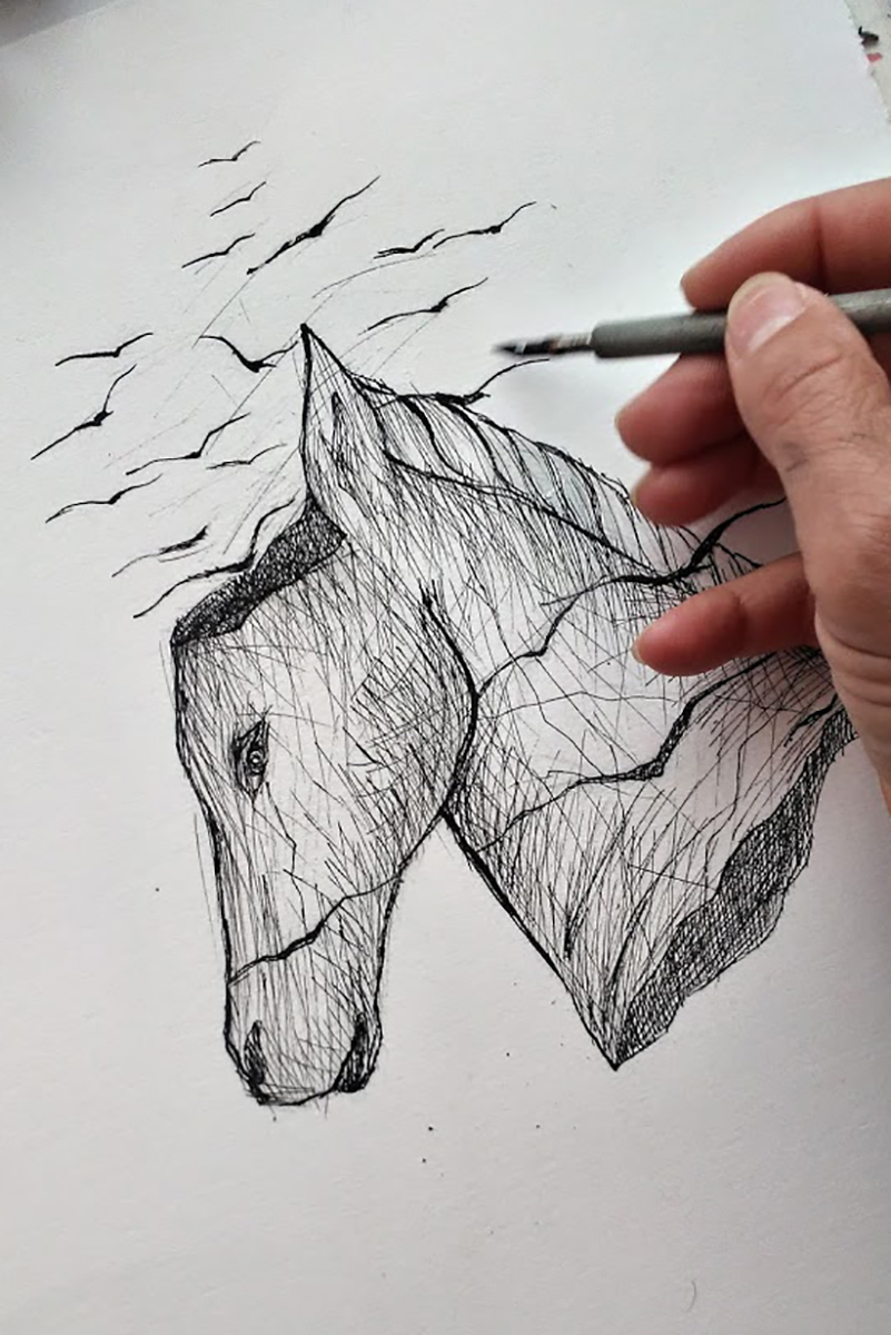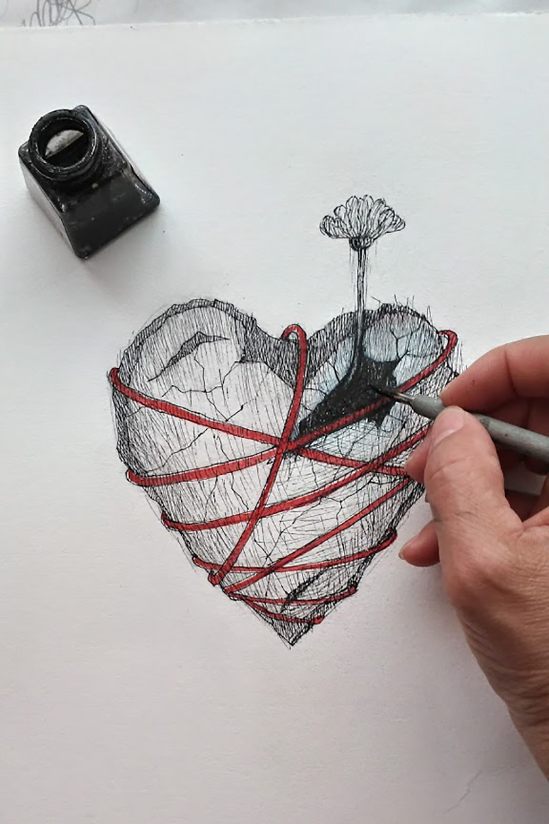 Emanuela Orciari è una disegnatrice fanese, che tesse con il suo segno fatto di inchiostri e tempere, un mondo borderline che sta al confine tra il fiabesco e l’onirico, con un velo di inquietudine e malinconia.